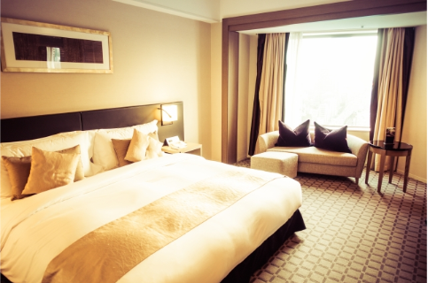 東洋と西洋の融合美をテーマに、落ち着いた色調のモダンインテリアや障子風のデザインを取り入れた客室は全部で370室もあります。